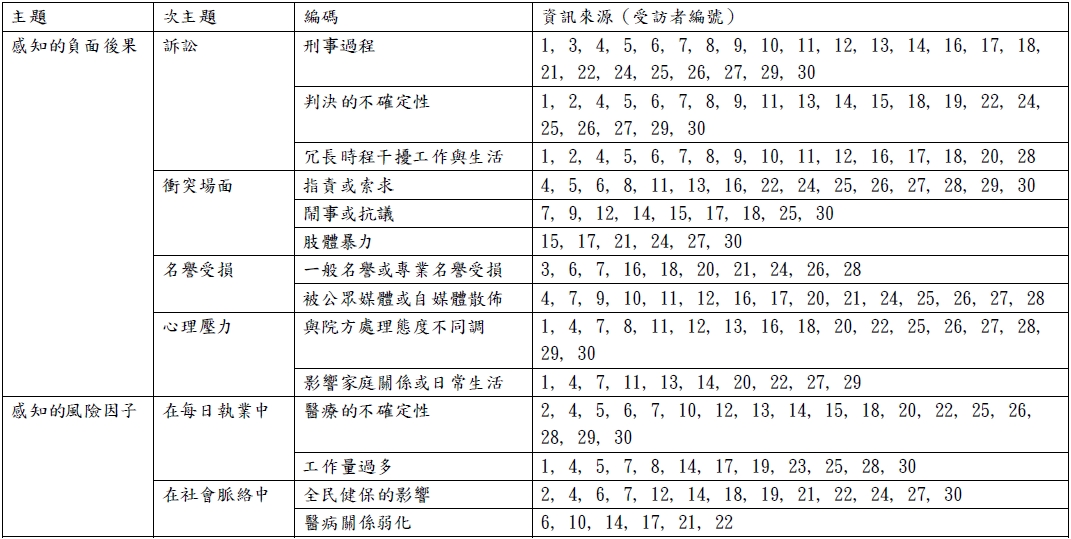 表二、醫療糾紛恐懼訪談的主題、次主題與編碼3(作者自製)