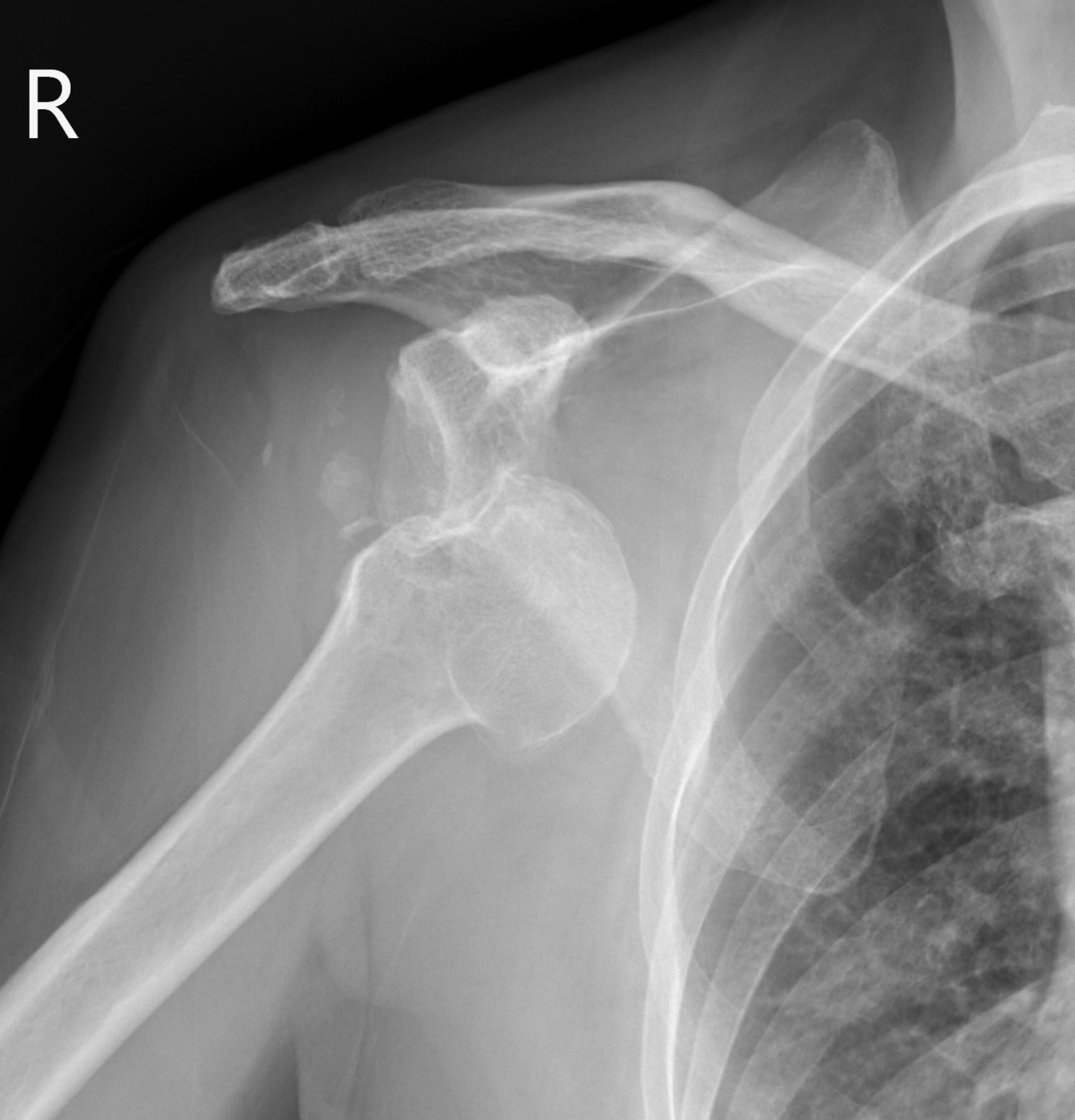 圖片1、70歲女性右肩關節前脫位肩部X光 影片1、Supraclavicular brachial plexus block