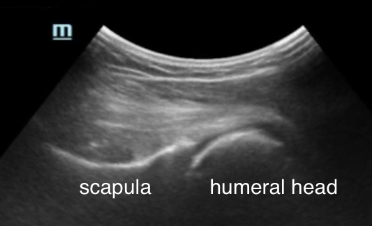 圖片2、70歲女性右肩關節前脫位超音波示意圖 影片2、70歲女性右肩關節前脫位超音波影像