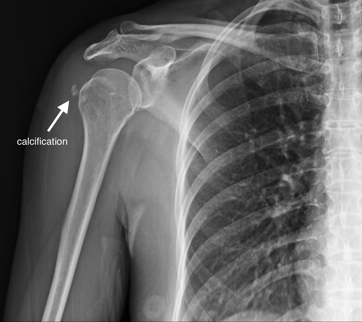 圖片6、56歲女性,右肩疼痛數日。肩部X光可見鈣化點